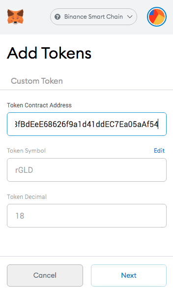 ● On the Add Token page, click on the Custom Token tab to expand the search window.